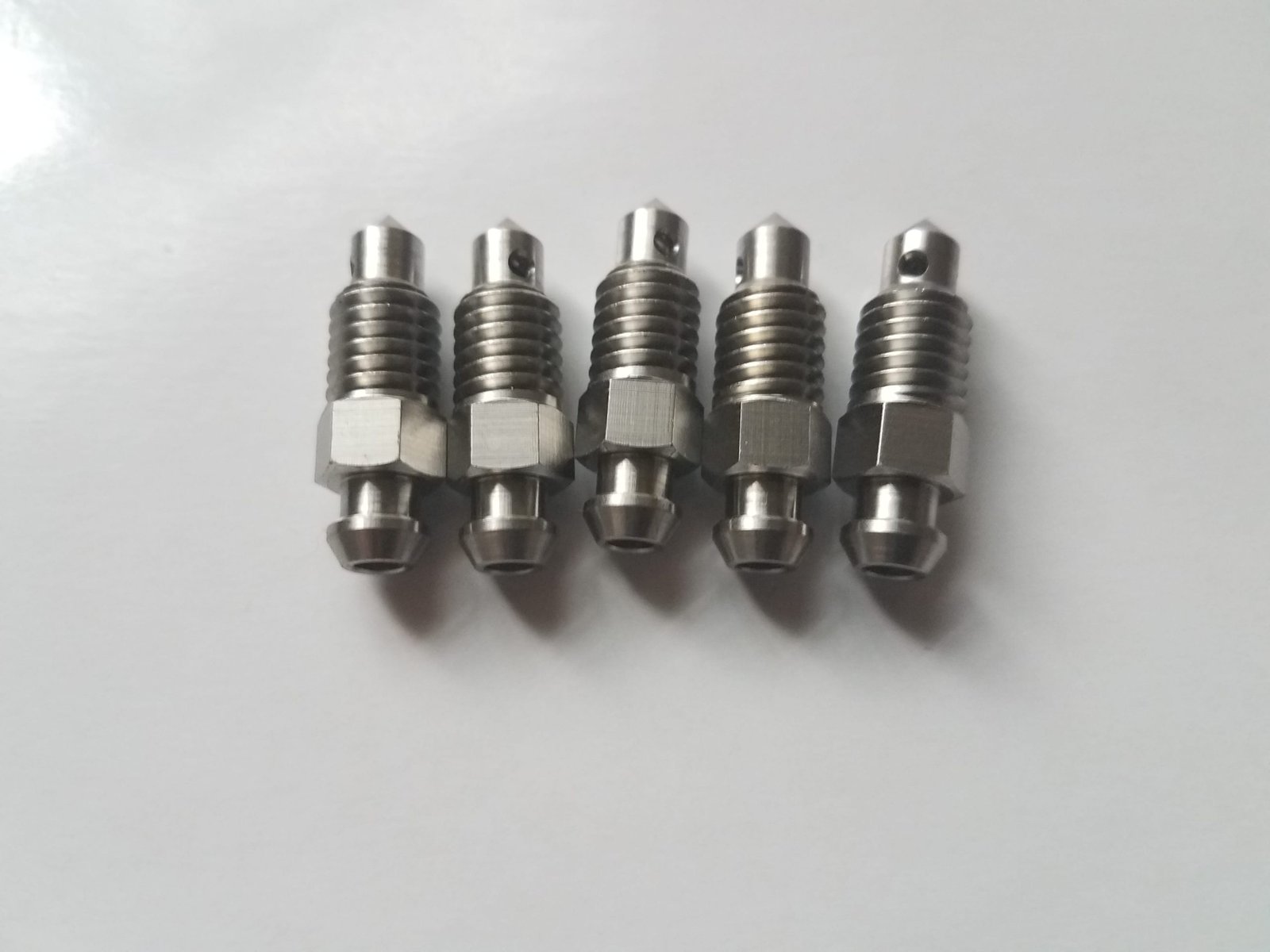 Brake bleeder made from Grade 5 titanium, ideal for high-performance braking systems. Corrosion-resistant, lightweight, and compatible with multiple motorcycle and bicycle models.