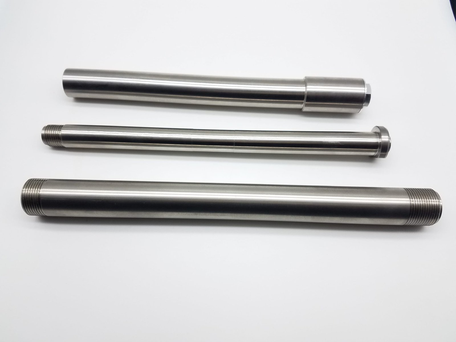 Precision-machined titanium axle, ideal for high-performance motorcycle or bicycle applications. Combines exceptional strength with low weight and outstanding durability.